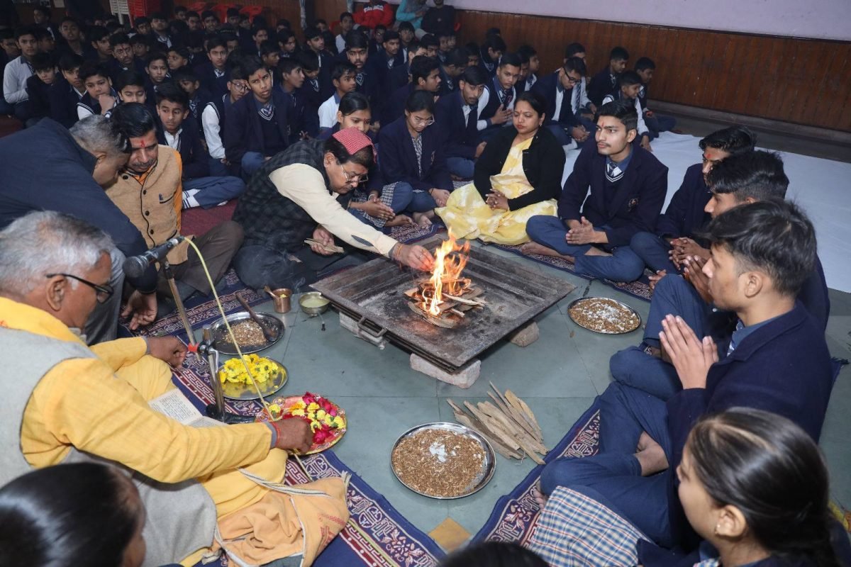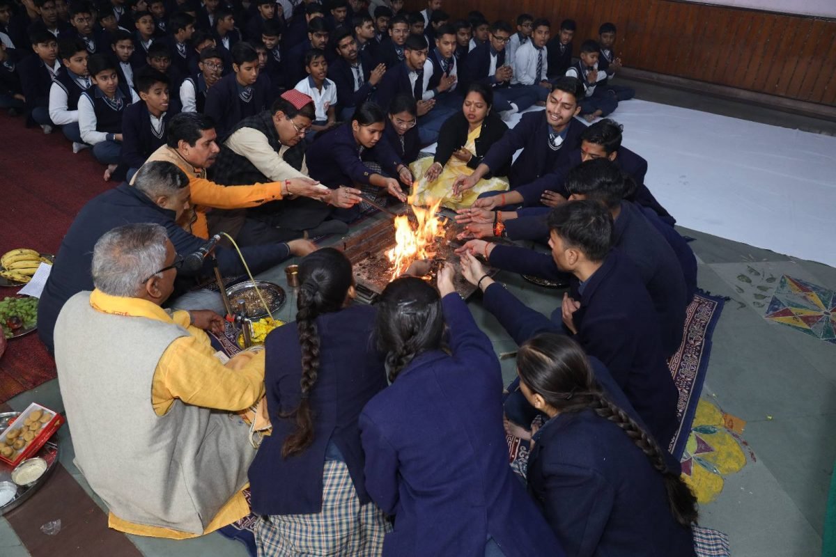 Students of Class VI to XII took part in the Hawan and Saraswati Pujan with great devotion. The prayer ceremony created a peaceful and spiritual atmosphere in the school.