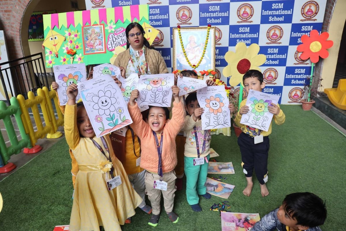 Basant Panchami was celebrated with enthusiasm and devotion in our school. Students from PG to Class V participated in colouring and drawing competitions and displayed their creativity through bright and colourful artworks.